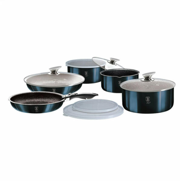 LEÃRÃS A Berlinger Haus Metallic Line Aquamarine Edition kovácsolt alumÃniumból készült edények három réteg márványbevonata és a turbó indukciós talp lehetÅvé teszi, hogy ételei energiatakarékosan és gyorsabban elkészüljenek. Mindenféle fÅzÅlapon - indukciós lapon is - használhatók. Az egonomikus soft-touch nyél
