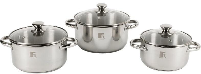 Bergneredénykészlet 3 részes RM( BGEU-5505) Mosogatógépben mosható, indukciós, minden főzőfelületre alkalmas, anyaga magas minőségű rozsdamentes acél, gőzkieresztő fedő, kiváló hővezetés. Technikai jellemzők: Termék típusa: Edénykészlet Anyaga: Rozsdamentes acél Űrtartalom: 1.5 l, 2.2 l, 2.9 l Indukció kompatibilis: Igen Mosogatógépben mosható: Igen Szín: Ezüst Sz
