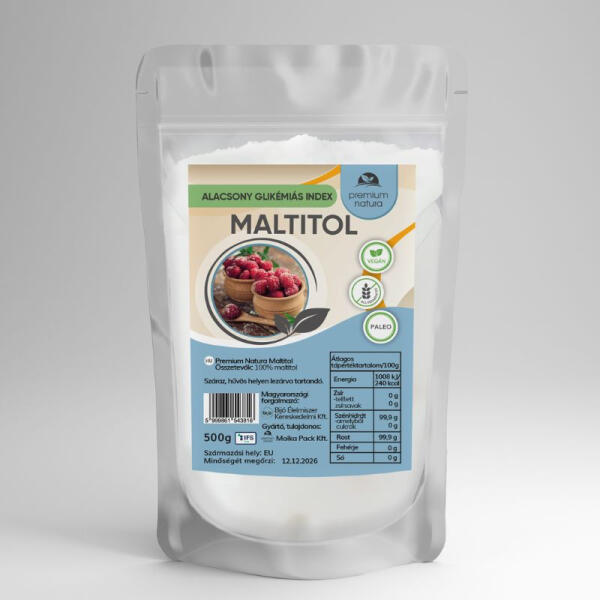 Premium Natura maltitol 500 g A termék dióféléket, glutént tartalmazó gabonát, kén-dioxidot vagy szulfitot tartalmazó anyagot, szezámmagot, szójababot, tejet, tojást vagy azokból készült termékeket NEM felhasználó üzemben készült. A maltitol népszerűvé vált az édesítőszerek piacán, mert a cukorhoz hasonlítható, de a kalóriák felét tartalmazza. Összetevők : 100%