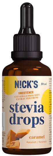 NICK’S KARAMELLÁS STEVIA CSEPPEK 50 ML Hozzáadott cukrot nem tartalmaz, 0 kalóriás édesítőszer, gluténmentes. Összetevők: desztillált víz, édesítőszer: szteviol-glikozid, aroma, inulin, C-vitamin. Tápérték 100 termékben:energi 0kJ/0kcal, zsír: 0g, amelyből telített: 0g szénhidrátok:0 g, ebből cukrok:0 g, , rost:0g, fehérje:0g, só:0g. Nagy mennyiségben történő fogya
