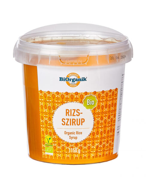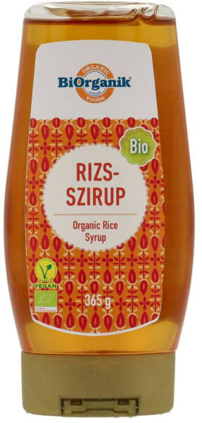 Biorganik bio rizsszirup 1150 g Összetevők: rizsliszt, víz A szirupgyártás folyamata: A gabonát lisztté őrlik. Víz és génmanipuláció mentes enzimek hozzáadása után adott hőmérsékleten elkeverik. Az enzimek a hosszú keményítőmolekulákat lebontják kisebbekké. Mechanikus szűrés során a nedvet elválasztják az oldhatatlan anyagoktól, majd melegítéssel besűrítik a szi