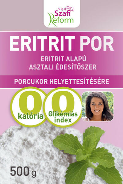 Az eritrit egy cukoralkohol típusú édesítőszer, amely a többi cukoralkohollal ellentétben energiamentes, 0 kcal kalóriatartalmú. Sokoldalúan felhasználható, kristályos állagának köszönhetően helyettesítheti a kristálycukor használatát. Összetevők: édesítőszer (eritrit) Átlagos tápérték 100g termékben Energia 0,8 kJ (0,2 kcal) Zsír: 0 g ? amelyből telített zsírsa