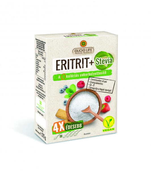 A hagyományos cukorhoz képest négyszeres édesítő értékű Eritrit + Stevia könnyű, jó ízű, és gazdaságos megoldás az otthoni sütés-főzéshez, és bármilyen ital édesítéséhez. Karamell készítésére és élesztő felfuttatására nem alkalmas. Bár kalóriát egyáltalán nem tartalmaz, fontos kiemelni, hogy egészségünk elengedhetetlen része a változatos, kiegyensúlyo