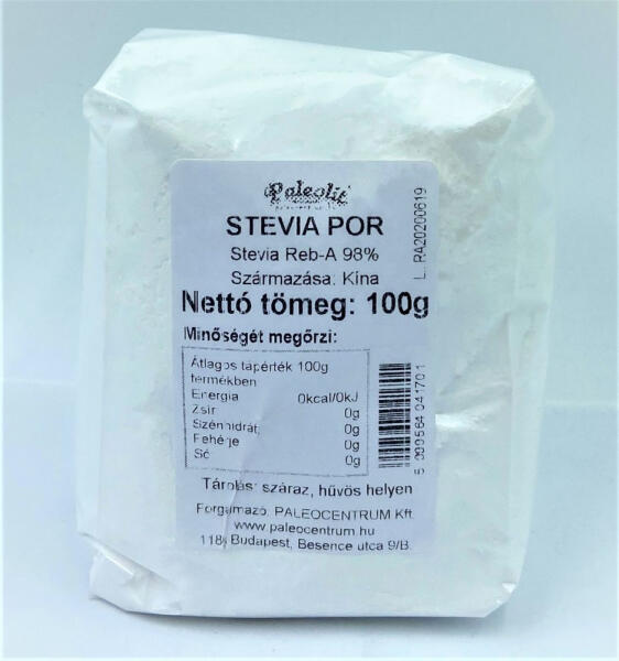 Stevia por minimum 98% Rebaudiosid A tartalommal. Összetevők: édesítőszer (szteviol-glikozidok)A sztívia (stevia, jázminpakóca) egy igazán különleges növény, levelei ugyanis édesek. Ennek köszönhetően a leveléből készült kivonatot használhatjuk természetes édesítőszerként. Bármely háztartásban helyettesíthetjük vele a cukrot, vagy más mesterséges édesítőket. Ne