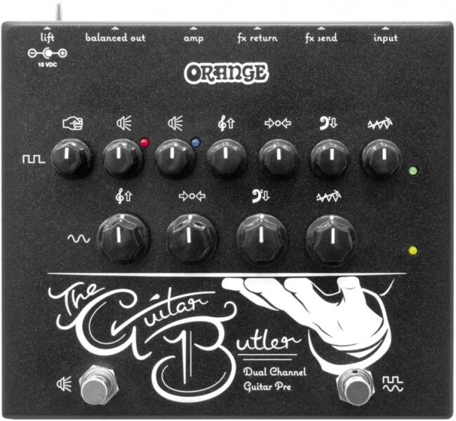 2 Channels: Clean & Dirty Clean Channel: Gain, 3 band EQ Dirty Channel: Gain, 3 Band EQ, Volume 1, Volume 2, Presence FX Loop XLR balanced out with speaker simulation and ground lift switch Foot switch: Clean / Dirty, Volume 1 / Volume 2 Input: 6.3 mm jack Output: 6.3 mm jack FX Send: 6.3 mm jack plug FX Return: 6.3 mm jack Balanced Out: XLR Power supply with 18 V DC mains adapter (included) D