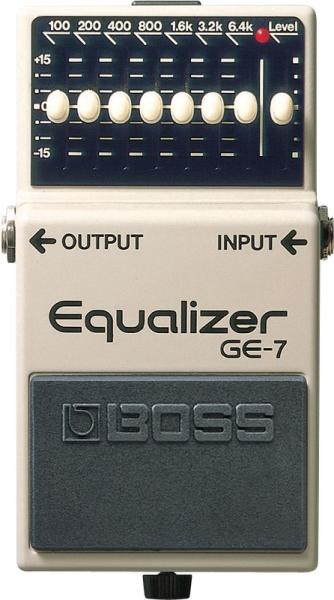 Gitár Graphic Equalizer effekt pedál Effektek: Grafikus hangszín szabályzó pedál, elsősorban gitárhoz Vezérlők: lábkapcsoló ki/be, 7-sávos EQ poti, hangerő poti Egyéb: GE-7 100Hz-től 6,4kHz-ig terjedô hét frekvenciasávban üzemelő grafikus EQ. Minden sávjában +/-15dB emelés vagy vágás végezhető a kívánt hangszín létrehozásához. Segítségével például kiküszöb