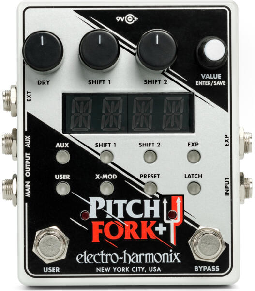 A Pitch Fork®+ két független és teljes egészében szabályozható pitchshifter engine-t tartalmaz. Mindkettő +/- 3 oktávval képes eltolni a hangmagasságot, és rendelkezik detune funkcióval (+/- 99 cent). Pontos hangkövetés, organikus hangszín és kiterjedt kontrol jellemzi ezt a pitch shifter pedált. Specifikációk: Dedikált hangerőszabályzás a Shift Voice-hoz és a száraz jel