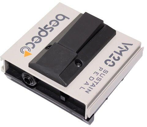 BESPECO VM20 Sustain pedál A VM20 egy Sustain típusu kapcsolópedál. Lenyomva működik, kiengedve bont. Polarításváltóval szerelve, így használható szinte minden márkájú berendezéshez. Csatlakozás: monó 6,3 mm jack aljzat.