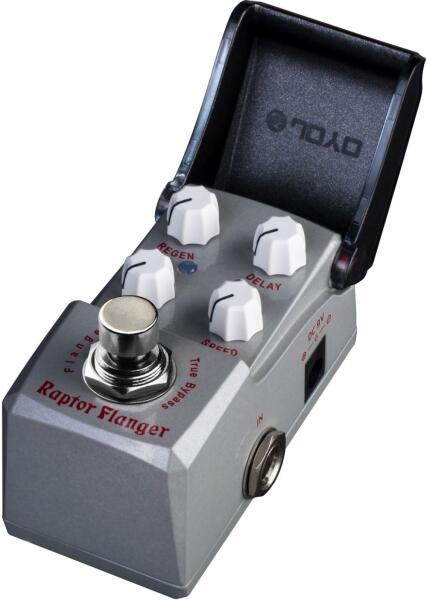JOYO JF327 IronMan effektpedál Raptor Flanger JF-327 Raptor Flanger A nagy testvér (Joyo Classic Flanger) IronMan változata, kis helyigénnyel de annál nagyobb hanggal és lehetőségekkel. A négy szabályzóval (Regen, Speed, Width, Delay) könnyen előcsalhatóak különböző Flange hangzások, a lágy chorus-szerűtől a vadászgép motorjának morajlásáig. True Bypass kivitelben.