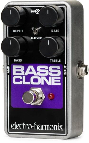 ELECTRO HARMONIX EH BASS CLONE Effekt Pedál A legendás Small Clone chorus pedál basszus gitárra fejlesztett változata. A chorus effekt, mint a tiszta és a modulált jel keveréke, sok állítási lehetőséget biztosít. A Crossover kapcsoló levágja a modulált jel légmélyebb tartományát (ezzel fókuszáltabb, tisztább mély tartományt nyújtva) a Bass szabályzó csak a tiszta jelet