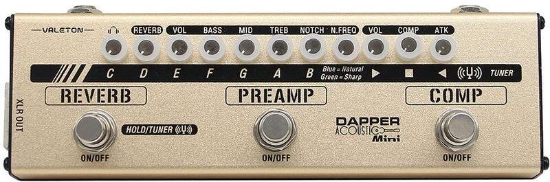 Akusztikus-gitár multieffekt pedál Comp: klasszikus kompresszor hatás Preamp: 3-sávos EQ, gerjedésgátlóval Reverb: természetes, tiszta elhalással XLR kimenet: a jelet közvetlenül a keverőbe/felvételre továbbítja Phones kimenet: a csendes gyakorlásokhoz Táp: 9V DC center negatív Áramfogyasztás: 140 mA Méretek 197 mm x 65 mm x 42 mm Tömeg: 435 g Max. delay: 1000 ms