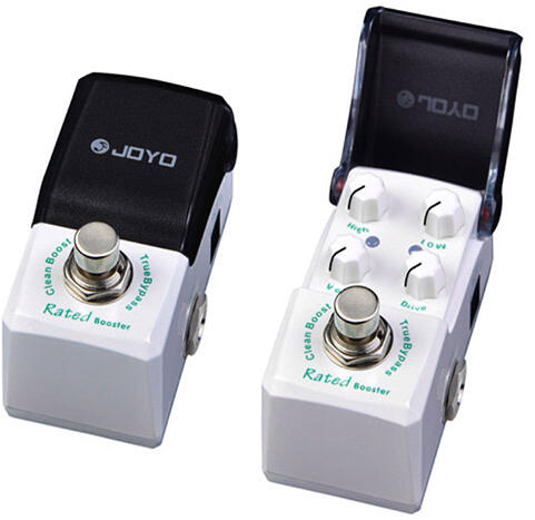 JOYO JF301 Ironman effektpedál Rated Boost Egy clean boost pedál, aktív +/- 12dB magas és mély szabályzással. Egy kis drive megjelenhet nagyobb jelű hangszedőknél, de kimondottan tisztán végzi a dolgát.
