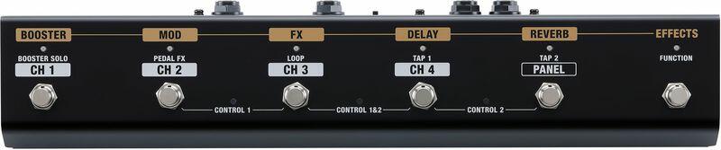 Lábkapcsoló Roland erősítőkhöz Kibővített GA-FC továbbfejlesztett funkciókkal egyes BOSS erősítőkhöz Masszív fém ház és hat nagy teherbírású lábkapcsoló Csatornaválasztás vezérlése, effektek be- és kikapcsolása stb. Kétszínű LED-ek a vezérlés állapotának egyszerű áttekintéséért Két külön Expression pedálaljzat További vezérlőaljzat háromutas üzemm