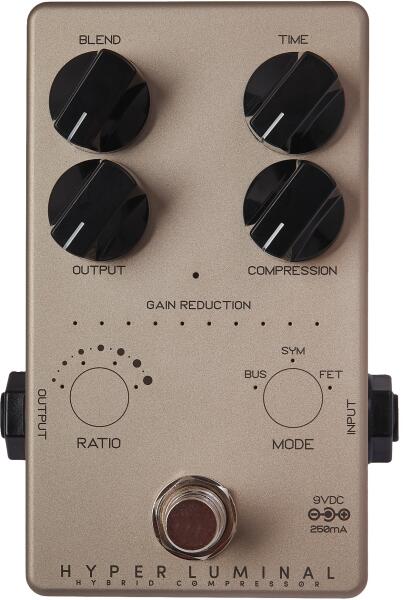 3 Switchable compressor models Digital modeling of the side-chain circuits emulation 3 of the most legendary compressors Completely analog signal path Touch-through metal sensors for ratio and mode Controls: Blend, Time, Level, Compression, Ratio Switch: Mode LED: Effect On, Ratio, Gain Reduction Footswitch: Effect Bypass Connections: Input (6.3 mm jack), Output (6.3 mm jack), Power adapter connec