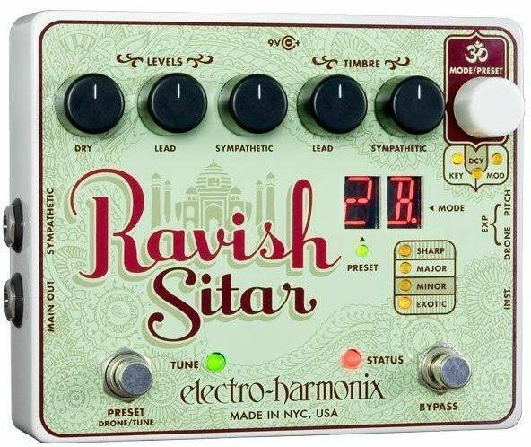 gitár effekt: gitárunknak szitár hangzást kölcsönöz, Level és Timbre szekció, Dry / Lead / Sympathetic szabályzó, true bypass, LED visszajelzők, Inst. Drone, Pitch bemenetek, Main, Sympathetic kimenetek