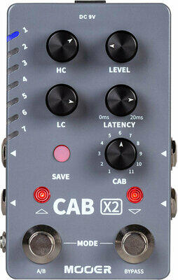Mooer Cab X2, cabinet simulation and impulse response effects pedal, 14 editable user presets, each preset can store two different cabinet simulation settings for the respective outputs, 11 pre-installed cabinet simulations of popular models, supports third-party impulse response files (IRs up to 2048 pts. ), flexible routing options in mono or stereo setups, footswitches can be used as on / off s