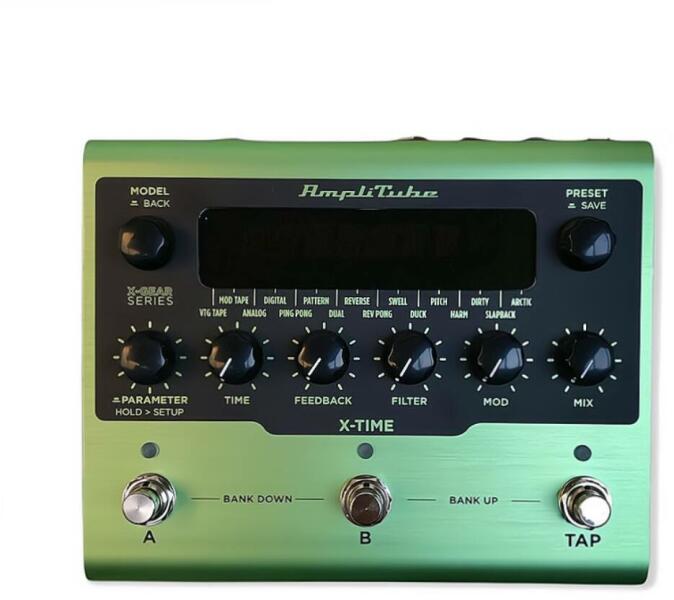 Delay pedal – High quality, rugged, modelling multi-algorithm delay FXAmpliTube X-TIME delay pedál 16 stúdió-osztályú algoritmus a szalagtól, vödör hangon át a kristálytisztaságig Korszer DSP és 24 bites, 192 kHz-es konverterek a lenyűgöző hangzásért Akár 300 tárolható preset USB hangrögzítéshez és presetek kezeléséhez Válts presetet az X-GEAR és az AmpliTube 5 k