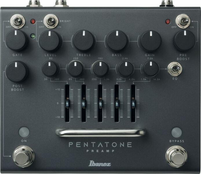 Pentatone Preamp gitár előfok pedál Effektek: előfok, 5-sávos EQ Vezérlők: Pre Boost, Gain, Bass, Treble, Level, Post Boost, Noise Gate, EQ frekvencia és szint Egyéb: true bypass kapcsoló Kijelző: bekapcsolást jelző led Audio csatlakozók: gitár bemenet, gitár kimenet, vezérlő bemenet Egyéb csatlakozók: - Tápellátás: külön megvásárolható adapter: AC509, 9V-os elem Méret