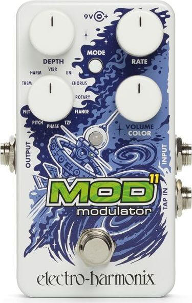 11 moduláció, mindegyik több móddal Intuitív rejtett paraméterek Beépített vagy külső lábkapcsolóval elérhető Tap Tempo Momentary Mode vált az effektet között Tartozék standard EHX 9.6DC200mA táppal Kompakt és strapabíró