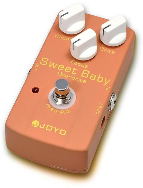 JOYO JF36 Sweet Baby Effekt Pedál "Lágy" (Low-Gain) torzító, a speciális Focus szabályzóval több overdrive stílusban mozoghatunk. Alumínium házban, True ByPass kivitelben. Méret: 118 x 64 x 38 mm