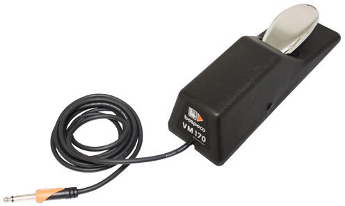 Zongora stílusú kitartó (Sustain) pedál, ABS házban, krómozott fém nyelvvel. - fém talp, csúszásgátló gumi lábakkal - polaritást váltó kapcsoló - 2m fix bekötésű kábel, mono jack dugóval