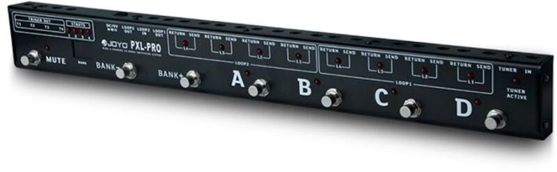 JOYO JPXLPRO Profi Loop 8 effekt pedált kezelő, nagyon sokoldalú rendszervezérlő. - 32 programozható beállítás (Preset) , 8 bank x A, B, C, D programhely - 8 effekt kör , 2 csoportba osztva (LOOP1, LOOP2) 8 pedál vezérelhető egyszerre, de lehetőség van két csoport (2x4 pedál) létrehozására, így az első csoport (LOOP1) köthető pl. az erősítő bemenetére még a második (L