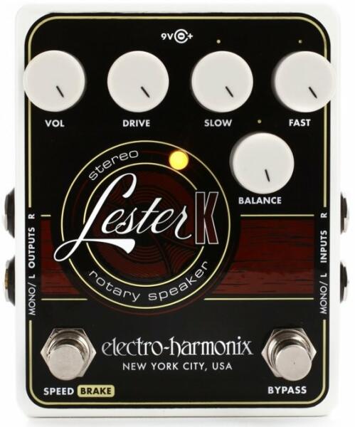 rotary speaker, masszív fém konstrukció, részletes beállítási lehetőség, tökéletes Leslie szimulátor, lassú és gyors üzemmódok, Squash kapcsoló, Drive és Balance szabályzó potméterek, tápellátás 9V hálózati adapterel (tartozék), méretek: 102 x 121 x 89 mm