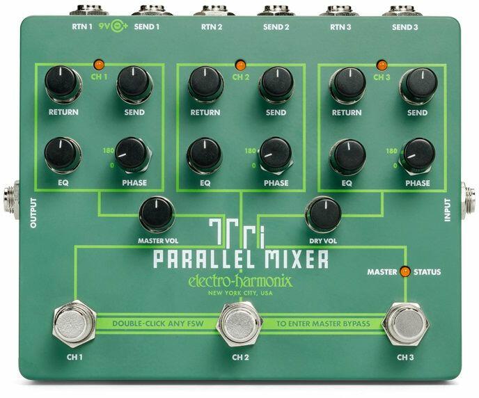Three separate FX loops with flexible control enable the following configurations: up to three parallel FX loops - seamless switching between FX loops in XOR mode - send an instrument to 3 separate amplifiers or mix 3 instruments into one single output. Controls: Dry Vol, Master Vol Controls CH1, 2 & 3: Return, Send, EQ, Phase LED: CH1, CH2, CH3 Active Footswitch: CH1, CH2, CH3 Input: 6.3 mm j