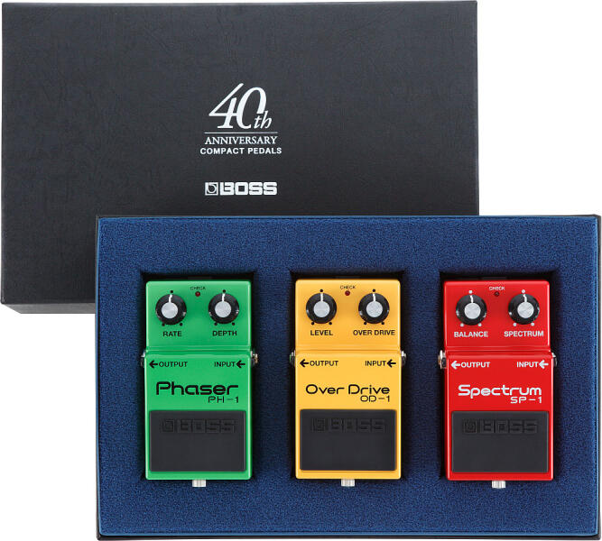 A három eredeti BOSS kispedál újjászületése limitált kiadásban A kompakt pedálok négy évtizedes innovációját és a világ több millió felhasználójának támogatását ünnepelve a BOSS örömmel mutatja be a Compact Pedal 40th Anniversary Box Set-et. Ebben az egyszeri, limitált kiadású csomagban az eredeti OD-1 Overdrive, PH-1 Phaser és SP-1 Spectrum kispedálok születnek ú