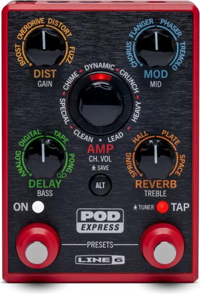 Az ultra-hordozható POD Express Guitar erősítő- és effektprocesszor segítségével bárhova elviheted a hangzásaidat. Az egyszerű kezelés könnyűvé teszi a használatot, míg a HX processzorcsaládból származó modellek kivételes hangminőséget biztosítanak. Az eszköz működik 3 db AA elemmel (tartozék) vagy opcionálisan rendelhető 9 V-os adapterrel. A rendkívül hordozható