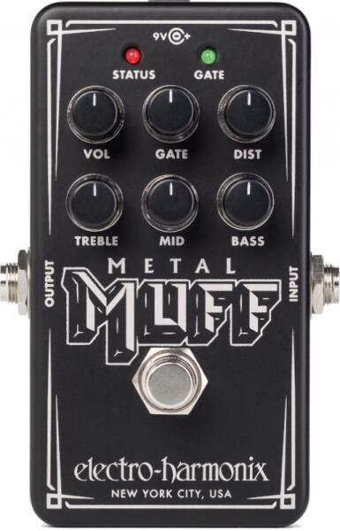 Nano Metal Muff torzítópedál, zajzárral. Az igazán komoly heavy metal gitárosok számára. Kompakt, pedálboard-barát kivitelezés. Kiterjesztett EQ-szabályzás: Mély +/- 14dB vágás/kiemelés, Közép +/- 15dB, Magas +/- 10dB. VOL (hangerő): kimeneti hangerő beállítása. DIST: bemeneti gain és torzítás beállítása. Zajzár (noise gate): kiszűri a nem kívánt zajokat, LED jelz