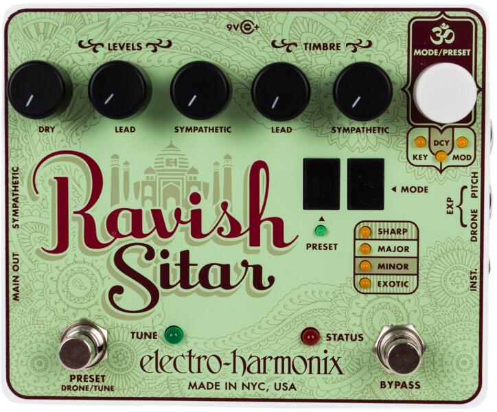 gitár effekt: gitárunknak szitár hangzást kölcsönöz, Level és Timbre szekció, Dry / Lead / Sympathetic szabályzó, true bypass, LED visszajelzők, Inst. Drone, Pitch bemenetek, Main, Sympathetic kimenetek