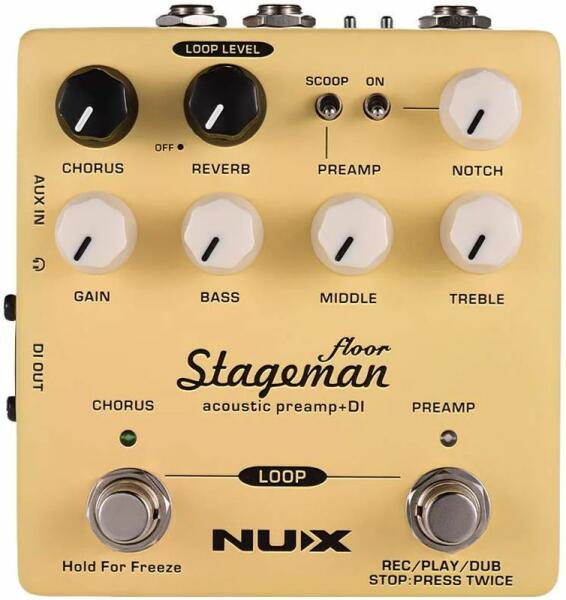 Előfok és DiBox effekt pedál akusztikus gitárhoz, looper funkció Chorus, reverb and freeze effektek Szabályzók: Gain, Bass Middle, Treble, Bass Middle, Treble Kapcsolók: Scoop / előerősítő, Notch szűrő be / ki Lábkapcsoló: Kórus be / ki, effekt be / ki / REC / PLAY / DUB Bemenet és kimenet: jack 6,3 mm-es jack Insert: 6,3 mm-es jack USB csatlakozás (firmware frissítés) Tápell