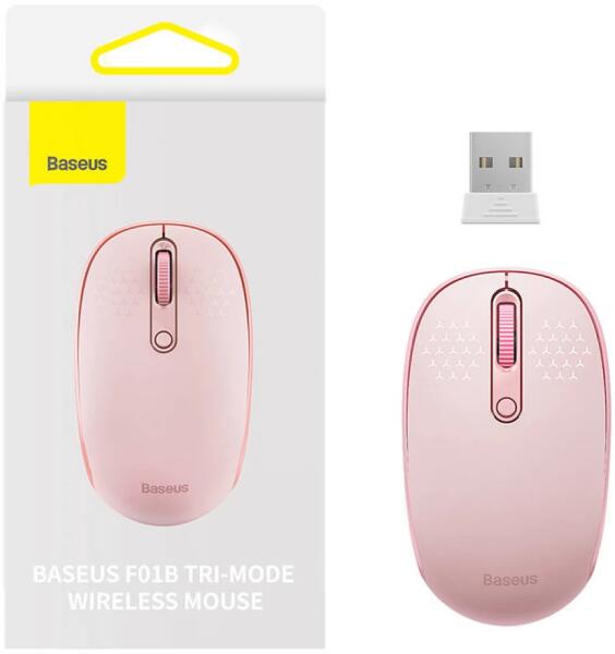 Baseus F01B Tri-Mode 2.4G BT 5.0 1600 DPI vezeték nélküli egér (rózsaszín). Könnyű, kompakt egeret keres, amely megkönnyíti mindennapi munkáját? A Baseus F01B vezeték nélküli egér kiváló választás lesz! 3 fokozatú DPI-beállítást kínál, és 2 módon könnyedén csatlakoztathatod kompatibilis eszközödhöz. Lehetővé teszi továbbá, hogy egyszerre 3 eszközzel párosíts