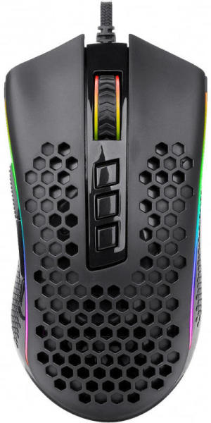 Redragon Storm Elite Gamer egér, Méhsejtes szerkezet, RGB világítás, Fekete ElőnyökPerforált burkolat a jobb kézszellőzés érdekében200IPS30G gyorsulásLeolvasási sebesség: 1000/500/250/125HzPixart 3389 optikai érzékelőOmron mikrokapcsolók (élettartam: 20 millió kattintás)Gombok száma: 9 (7 programozható)7 világítási mód (16,8 millió szín áll rendelkezésre)Teflon ala