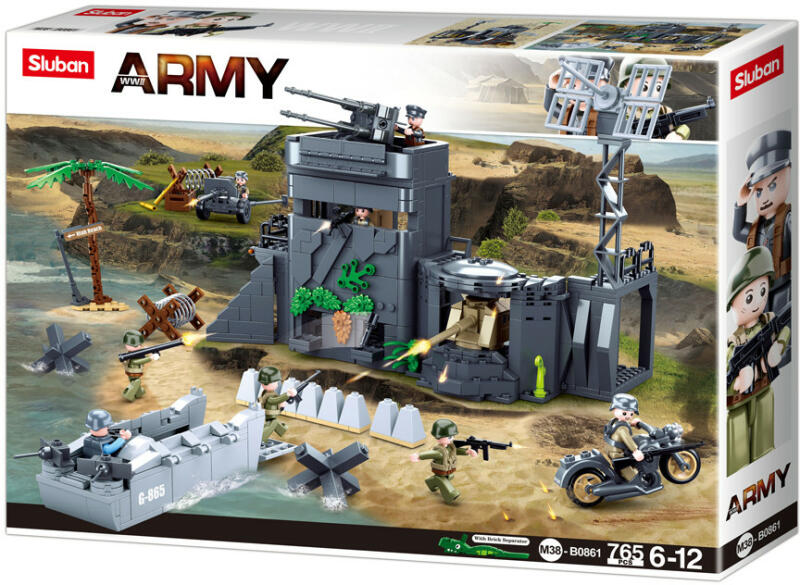 Sluban Army WWII - Atlanti Fal építőjáték készlet 765 darabos Sluban Army WWII - Atlanti Fal építőjáték készlet. A szettből összeépíthető egy tengerparti bunker és különböző járművek is. 8 figurát és egy ajándék elemszétválasztót is tartalmaz. Letölhető összeszerelési útmutató! A Sluban építőjáték készletek szórakoztatva tanítanak. A világszerte ismert