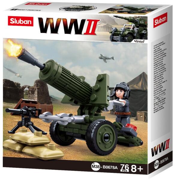 Sluban WWII - 4 in 1 szövetséges tüzérség építőjáték készlet A Sluban Army speciális kiadása ez 76 darabos, második világháborús szövetséges tüzérség építőjáték készlet figurával. A készlet további előnye, hogy egy 4 építőjátékból álló egység része, melyekből egy ötödik járgány építhető! Szerezd meg mellé a másik jármat is! Letölthető összesz