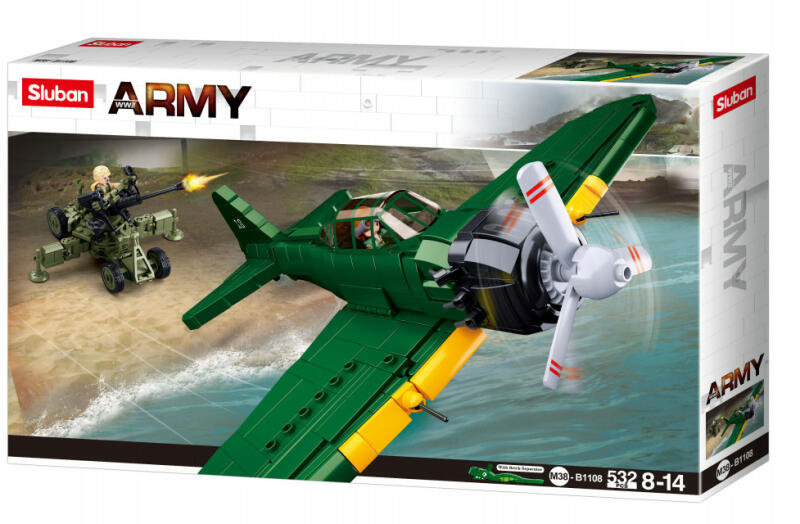 552 darabos Sluban második világháborús építőjáték készlet, amelyből egy japán A6M Zero vadászgép és egy légvédelmi géppuska építhető össze. Az összeépített repülő 26.1 cm hosszú. A készlethez 2 figura és egy ajándék elemszétválasztó is tartozik. Letölthető összeszerelési útmutató! A Slubant úgy tervezték hogy kompatibilis legyen a legkedveltebb építők