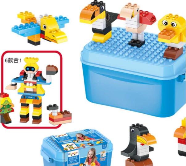 A legkisebbek részére készült építőjáték, mely kompatibilis az ismert dán gyártó termékével. A készlet 115 műanyag elemet és hozzá tartozó matricákat tartalmaz, így a megépített figurák dekorációval bővíthetők. Mindezt egy kék színű, praktikus tárolódobozban szállítjuk, melynek tetején is építhetnek a kicsi kezek. Anyaga: műanyagAz építőelemek mérete: kb