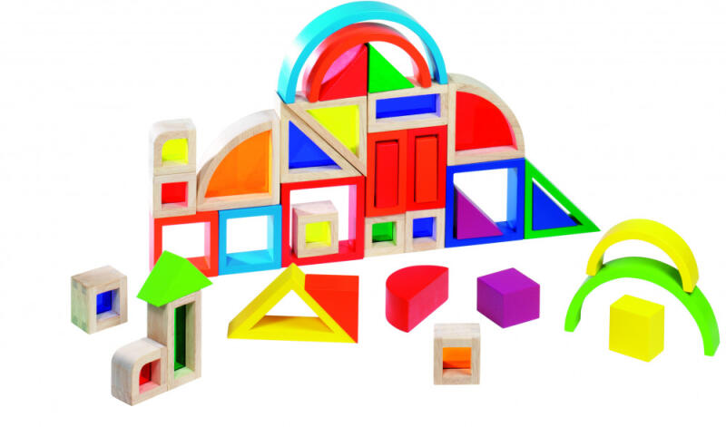 Szivárvány fa építőkocka fadobozban, 37 db 37 db-os fa építőkocka készlet a szokásostól eltérő, különleges formájú és harmónikus színösszeállítású fa építőkockákkal. Használaton kívül a tárolódobozában tarthatod. Anyaga: fa Méret: 32 x 24 x 3 cm