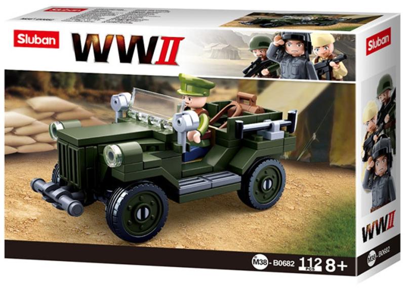 Sluban Army WWII - Szövetséges terepjáró építőjáték készlet A Sluban Army speciális kiadása ez a második világháborús szövetséges terepjáró építőjáték készlet, amely 112 építőelemből áll és egy figurát tartalmaz! Letölthető összeszerelési útmutató! A Sluban építőjáték készletek szórakoztatva tanítanak. A világszerte ismert építőjáték készletek