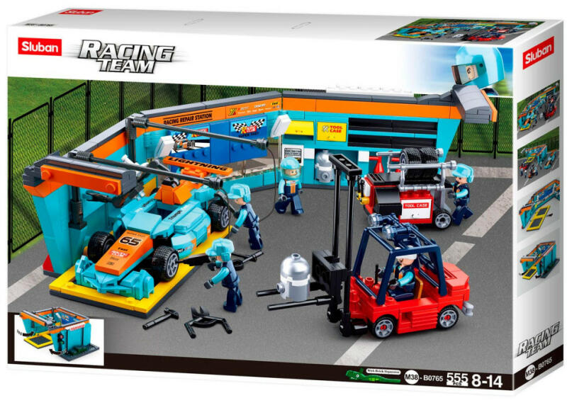 Sluban Racing Team – 555 darabos versenyautó boxutcai garázs építőjáték készlet 5 figurával, versenyautóval, kiegészítők sorával és ajándék elemszétválasztóval. A Sluban építőjáték készletek szórakoztatva tanítanak. A világszerte ismert építőjáték készletek építőelemei megfelelnek a legszigorúbb biztonsági előírásoknak és kiváló minőségű alapanyag
