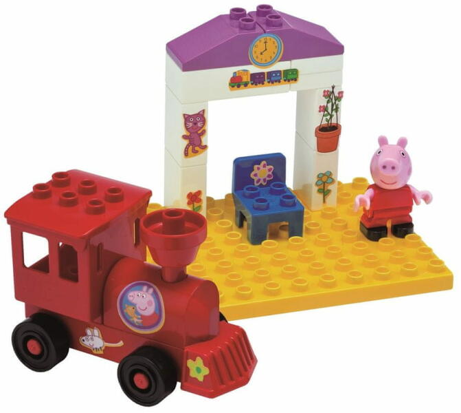 BIG építőjáték PlayBIG Bloxx Peppa Pig a peronon egy gyönyörű játék, amely megfelel gyerekeknek 18 hónapos kortól . Peppa malac mesemotívuma , aki a tévében már évek óta szórakoztatja a legkisebbeket, garantálja, hogy ezt a mesebeli építőjátékot minden kisfiú és kislány is imádni fogja. Az építőkockákból csodaszépen ragyogó peron és kisvonat rakható össze, a