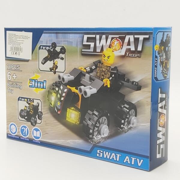 > a specifikáció színei és tartalma eltérhetnek az ábráktól 3in1 Építőjáték készlet - Swat ATV A 3in1 készlettel megépíthetsz egy swat járművet. Csomagolás méretei: kb. 19×13cm > 6 éves kortól ajánlott