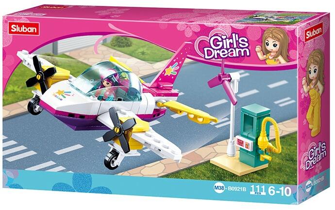 111 darabos Sluban Girl's Dream magánrepülő építőjáték készlet egy figurával és kiegészítőkkel. A Slubant úgy tervezték hogy kompatibilis legyen a legkedveltebb építőkészlet márka termékeivel is. A játékrészek nem toxikusak, megfelelnek a GOST-nak, és minőségi bizonyítvánnyal rendelkeznek. A készletekben általában pótalkatrészek is találhatóak.