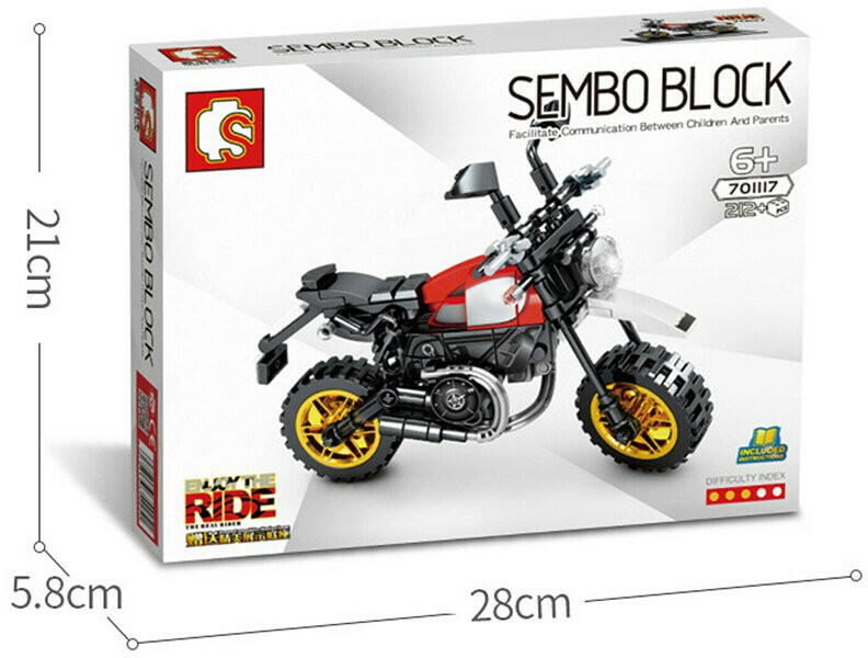 212 darabos Sembo Block építőjáték készlet amelyből egy krosszmotor építhető össze. A készlethez állvány is tartozik. A Sembo Block építőjátékokat úgy tervezték, hogy a legismertebb és legkedveltebb építőjátékokkal is összeépíthető legyen. Az építőjáték 6 éves kortól ajánlott. Az motor színe: többszínű Az motor mérete: 28x21x5,8 cm Az építőjáték any