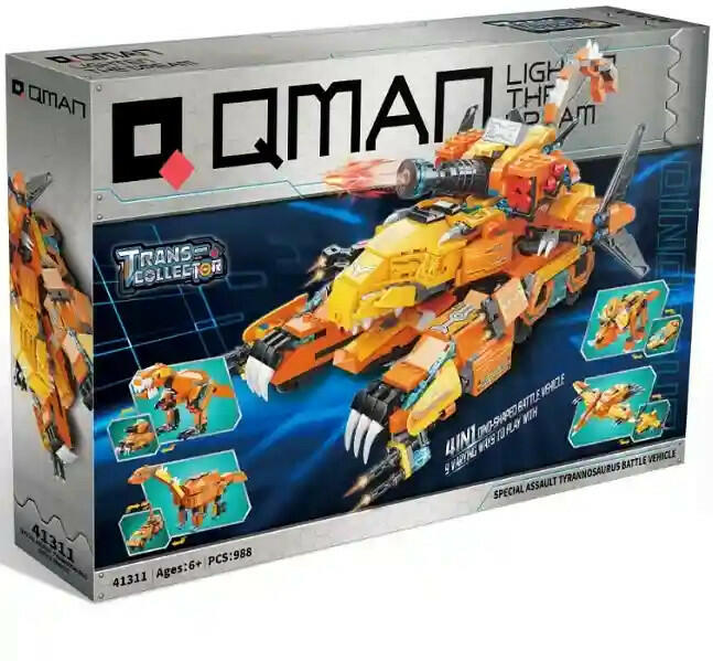 A készlet 100%-ban kompatibils a Lego termékeivel! Ez a Qman szett 4 önálló dinóból áll, amikből egy félelmetes harci járművet tudsz összeállítani. Az egyes modellek önállóan is nagy játékélményt nyújtanak, de összerakva őket egy fantasztikus harci jármű áll a rendelkezésedre, amivel minden harcot megnyerhetsz.