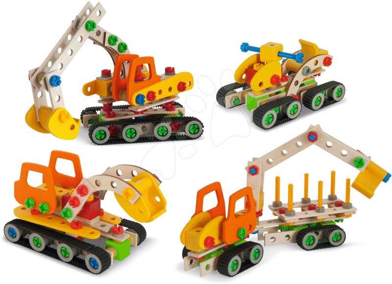 Fa építőjáték 4in1 Constructor Crawler a német Eichhorn vállalat műhelyéből modern gyerekjáték minden ügyeskezű gyerkőc részére már 6 éves kortól. Az építőjáték 170 elemből áll, így akár 4 különböző modellt is összetudnak a kicsik szerelni, ezek közé tartozik a daru, mobildaru, vagon és hójáró is. A legapróbb részletekig kidolgozott fő elemek elsőosztál