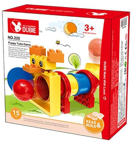 WANGE® - DUBIE 220, készségfejlesztő építőjáték kicsiknek, Kutyusos alagút labdajáték A játék remekül fejleszti a finommotorikus készséget és a kreativitást is, továbbá a kicsik egyéb tulajdonságait is, legyen szó akár számolásról vagy a színek, és formák megkülönböztetéséről. Ez a különleges kicsiknek szóló játék NEM a LEGO® terméke, hanem WANGE® DUBI