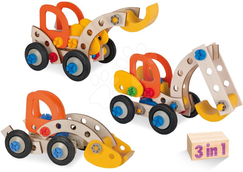 Fa építőjáték 3in1 Constructor Excavator a német Eichhorn vállalat műhelyéből tökéletes ajándék minden kreatív gyerkőc részére már 4 éves kortól. Modern építőjáték 90 elemből áll, így lehetősége lesz gyermekének akár 3 modellt is összeszerelni - markoló, traktor és homlokrakodó vár a gyerkőcökre. A legapróbb részletekig kidolgozott fő elemek elsőosztály